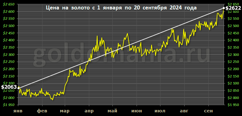 С 23 по 27 сентября, золото рекордно подорожало с $2622